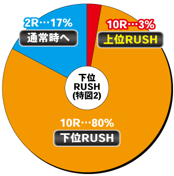 RUSHは大当り or 1/184.6の転落抽選まで継続。HYPER GO!GO! RUSHは大当り時に通常時へ転落する2R当りが存在。ラッキートリガーであるLUCKY GO!GO! RUSHでは2R当りも継続となるため継続率がアップしている。