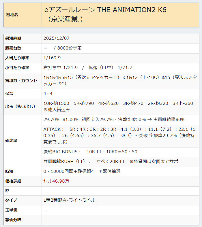 | 台の名称 | eアズールレーン2 THE ANIMATION 超次元  |