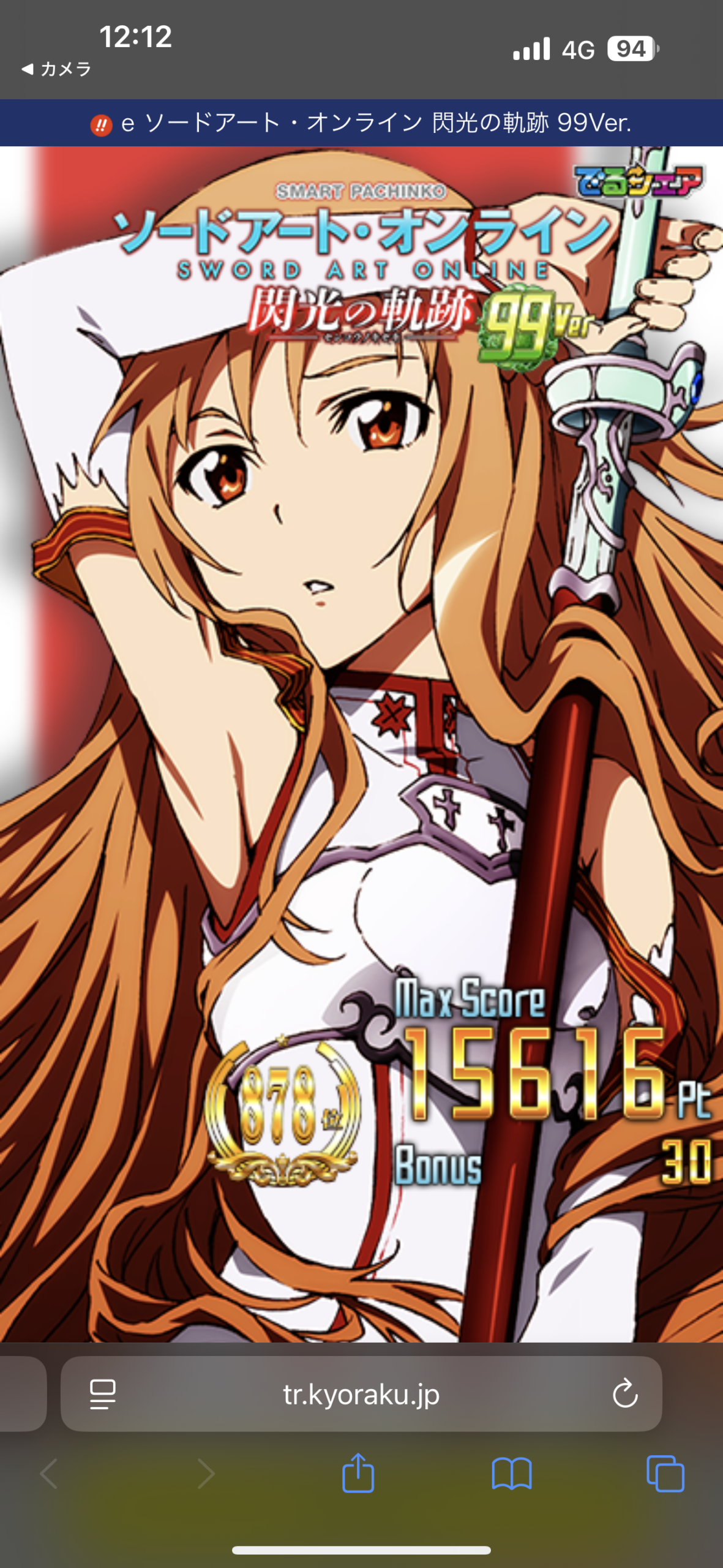 激アツなリーチを外してからシルエットのアスナが走ってきて暗転からの復活全回転はゼブラ7揃いの直LTでした