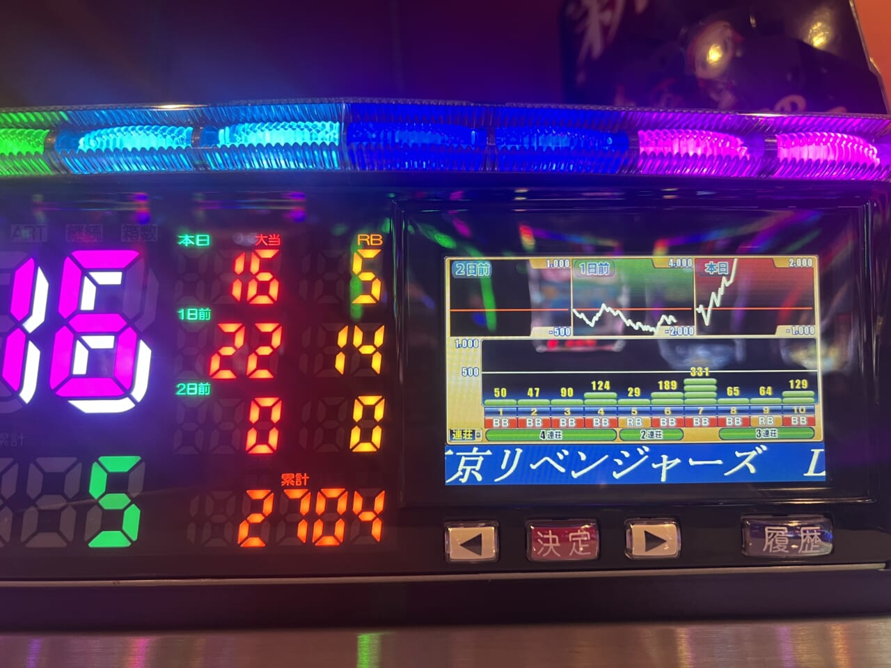 今日、朝一発目のBIGでレインボートロフィ出て、1日ぶん回したグラフ載せます。