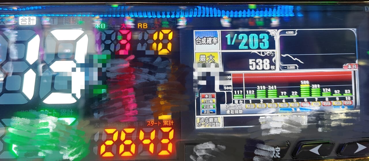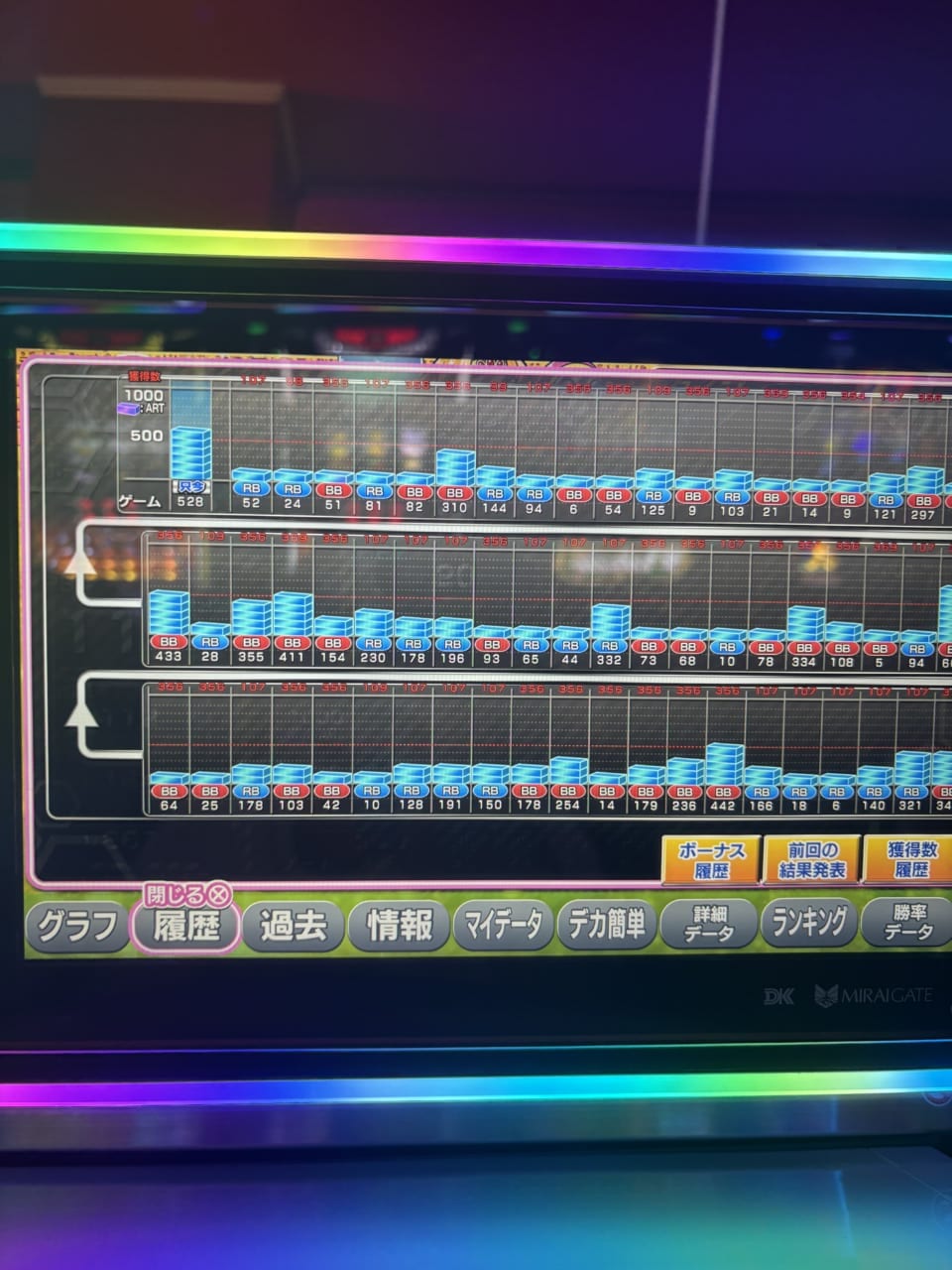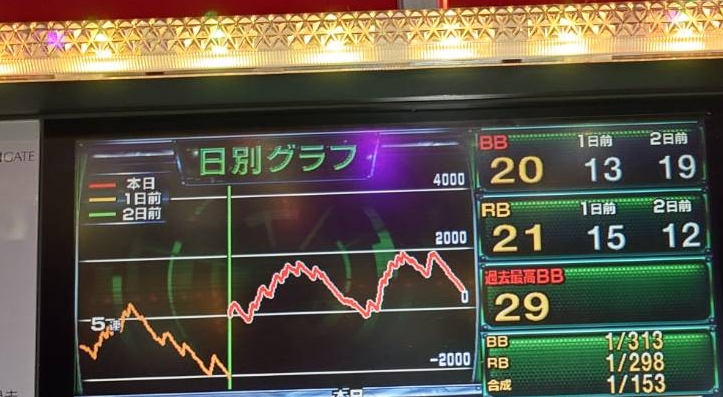 当たり前ですが低設定はなかなかエグいですね。履歴を見たら1000G超え・RBからの、次がまた700G超え、1日トータルでBB1/600、RB1/700、合算1/300以下とか。それでも3~4連くらいしているものの、100G以内=連なので、トータル5~600枚程度?今後、低設定放置になればとても打てないなぁと。