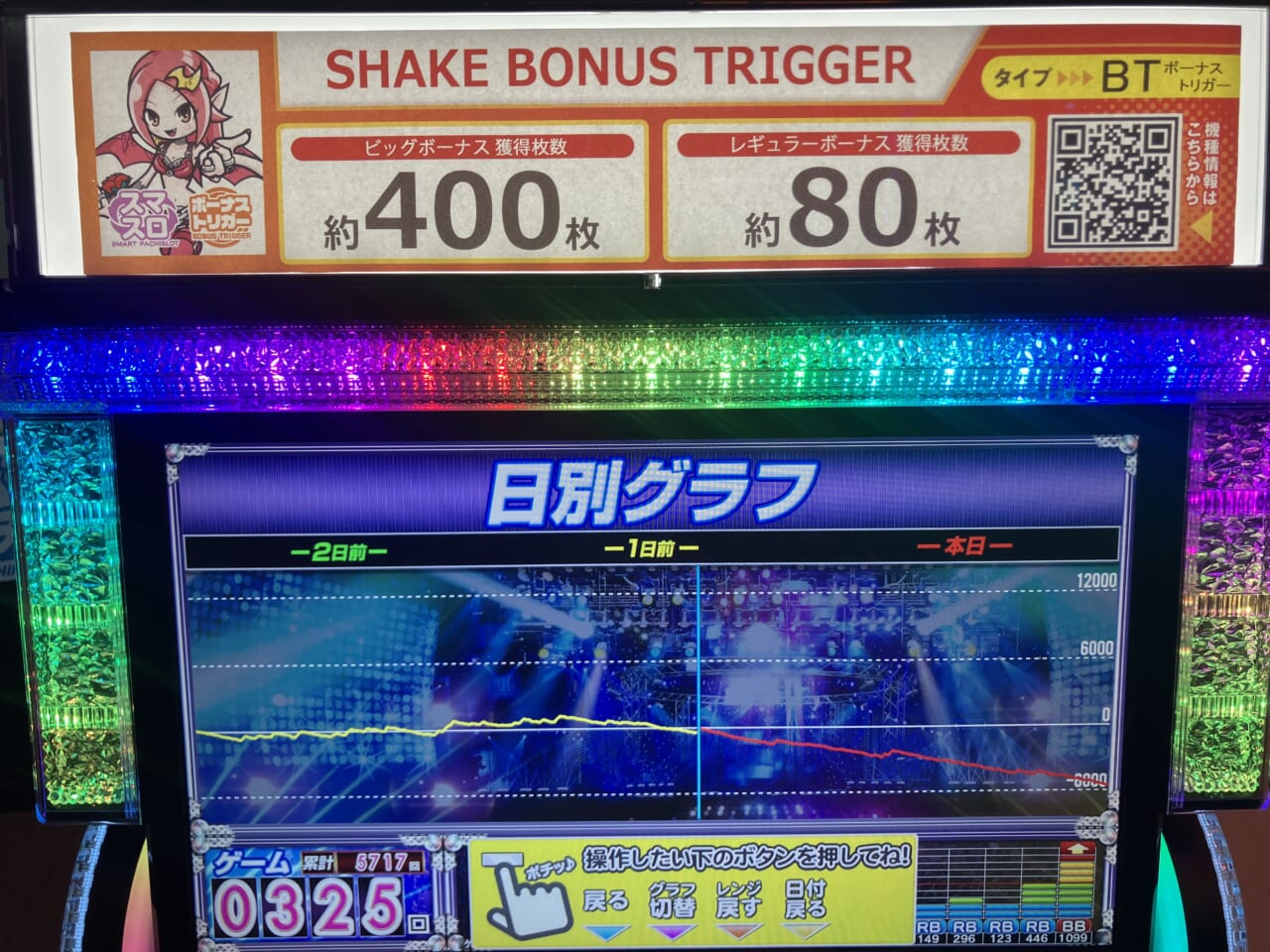 こうATもRTも付いてないドノーマルで下が甘い機種ばかり出されてもなぁ。ホールにとっては負担にしかならなそうだし、ユーザー的にも設定に期待なんかできなし、仮に1で99%だとして出して飲まれ、出して飲まれをただ繰り返すだけということは目に見えてるんで、こういうのは1シマに3台×2機種もあれば十分だと思うんだけど、無駄に次から次に出してくるよね。しかも機歴を匂わせる感じで。よほど思い入れのある機種、もしくは新しく思い入れが生じそうなものでないと「ぜひマイホにも入れてほしい!」とはならんよね。肝心のこのシェイクへの思い入れですか?音楽は良かったよねぇ~ぐらいしか特に無いので笑。50%BTループについても所詮50%上ブレれば下ブレるだけと、一回の出玉も平均値でしか見れないし、ドノーマルはドノーマルだよ