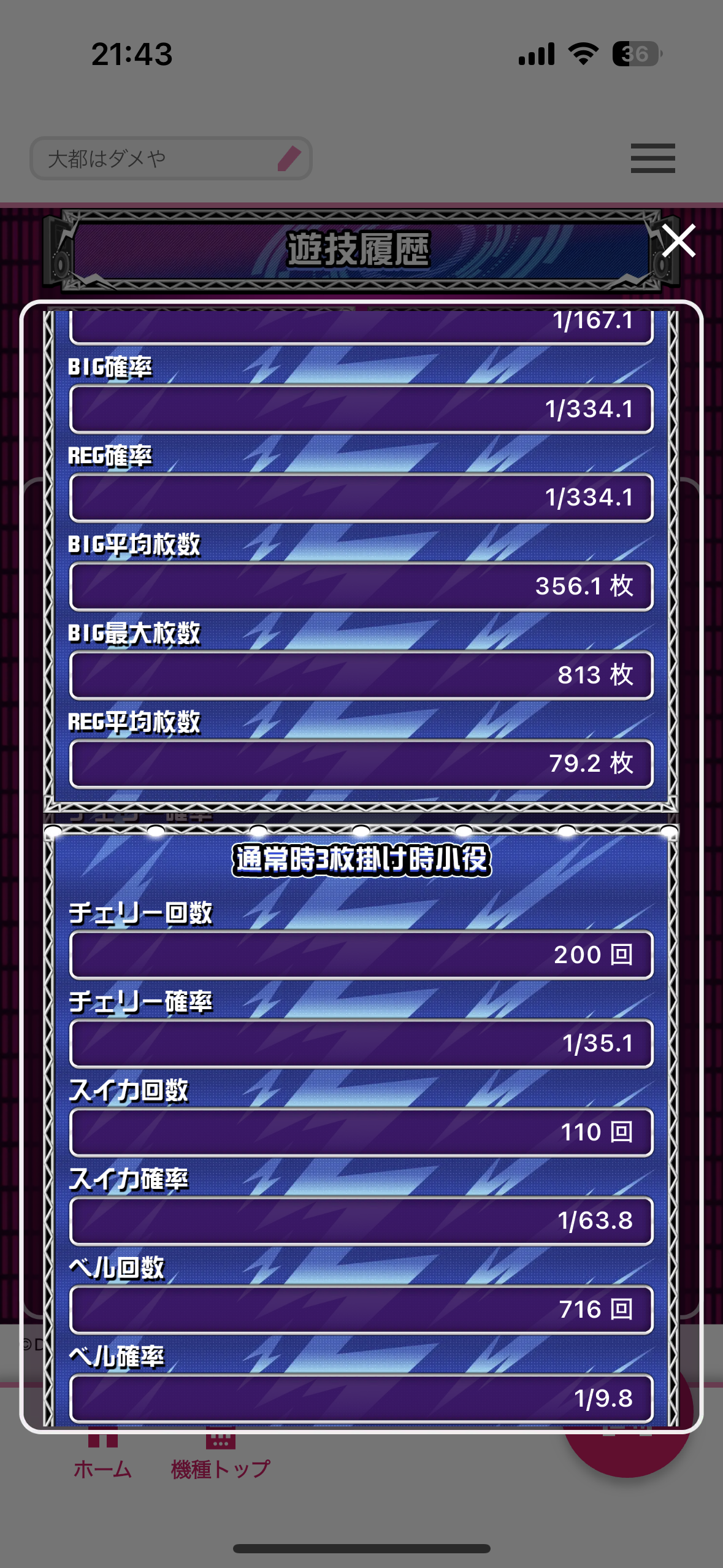 リーチ目は種類が多くて合算したらそこまで重くないんだろうけど、単体で考えると割と重いからハマる。子役重複もリプ、ベルを含む全役で当たるからハマる。写真は撮ってないから証拠出せって言われたら出せないけど、ボナ間1400とかハマってて2300回転でBB3回RB0回のデータも見かけた…