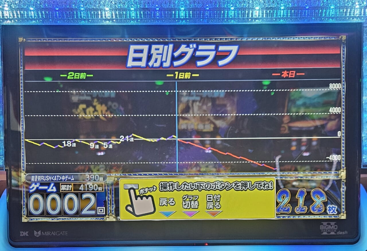 今日もホールで見てきましたが、モミモミだったグラフがストンと落ちてまたモミモミ…という動きも見たので、高設定挙動だから安定して勝てるというわけでも無さそうです
