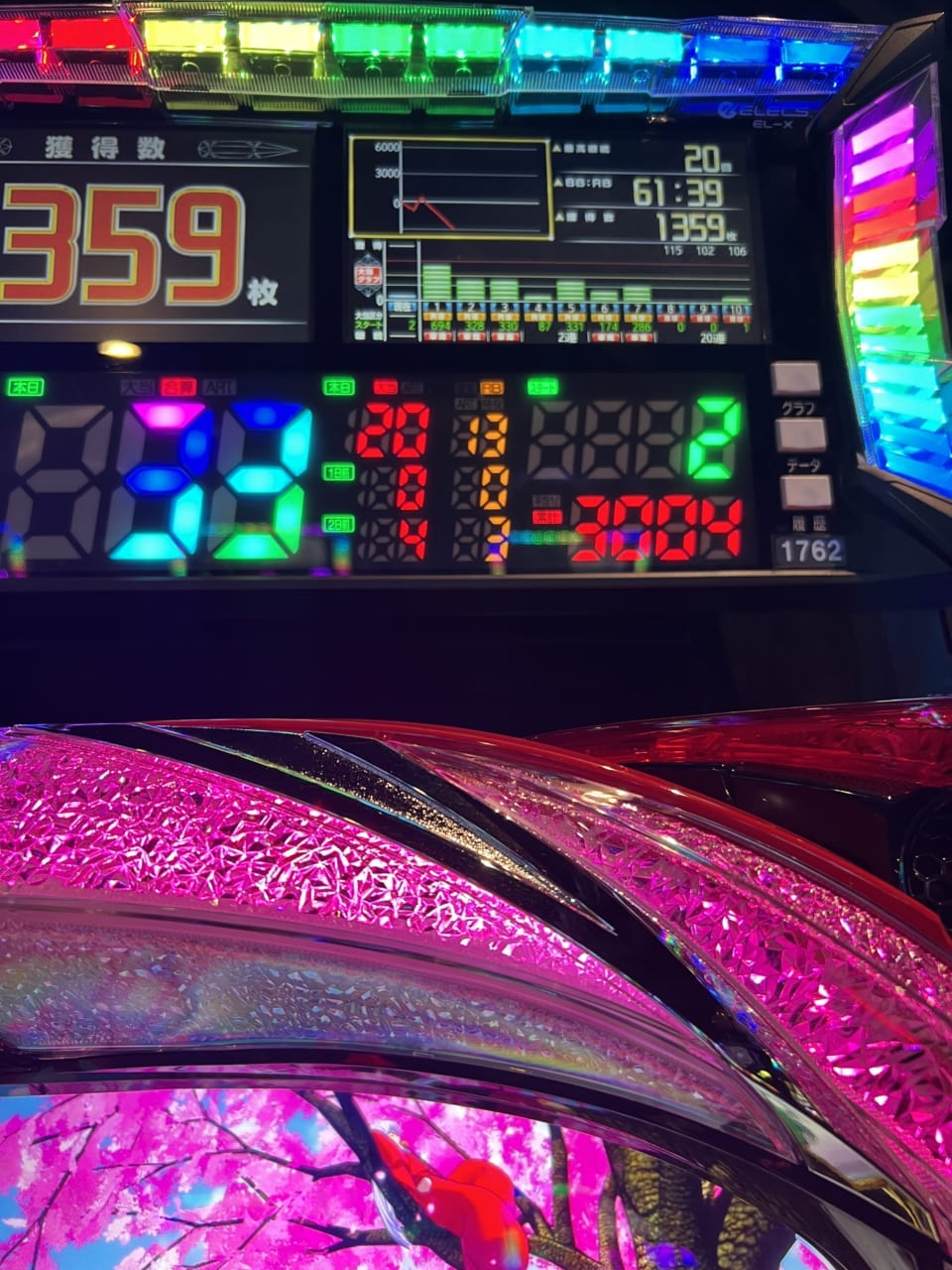 あと200枚程で差枚にて有利切りと言うところで少しモミモミ、その後それまで一度もcz当選まで333ゲームを超えていなかったのにどれだけ強レア役を引こうがczに当選しなくなり333ゲームを超える様になり(4周期目ですら超えました)キツい展開、ストレートで3600枚程あった持ち玉全て飲まれたところで少し追加投資して3スルー天井からst当選も同色2連6回程引いたがボーナス取れず最後の1ゲームでチャンス目を引きボーナスひとつ獲得してst終了