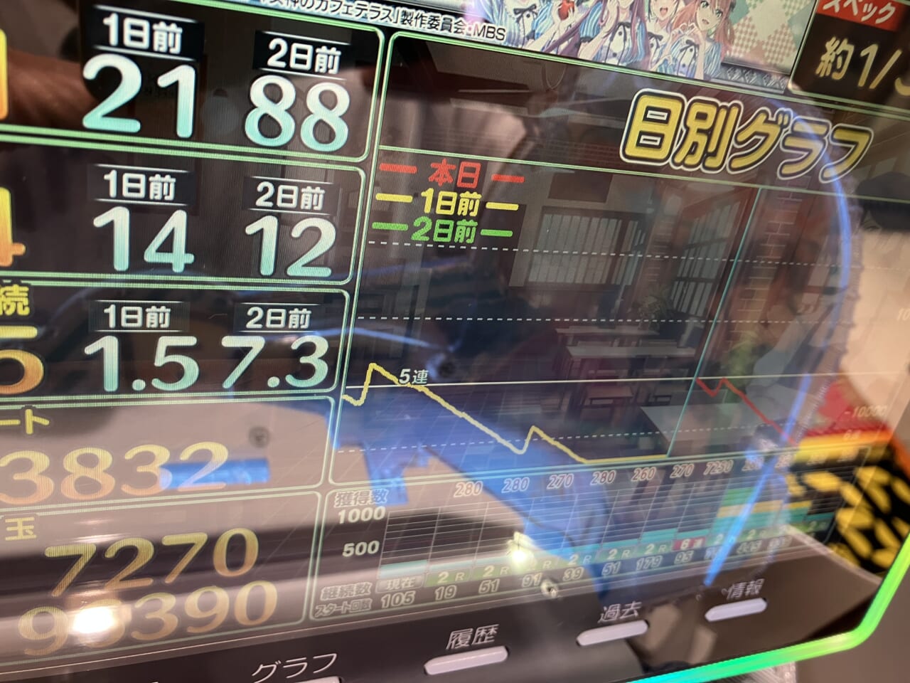 そもそも連チャン全然しない。だいたい2、3連で終わる。しかも1500によるとクソ出玉。