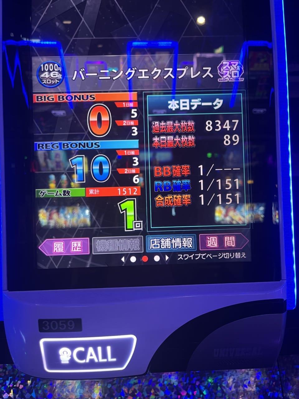あとこの台天井短縮が無いので、朝イチで350ゲーム以内に4枚ベルナビが出たら据え置き確定です