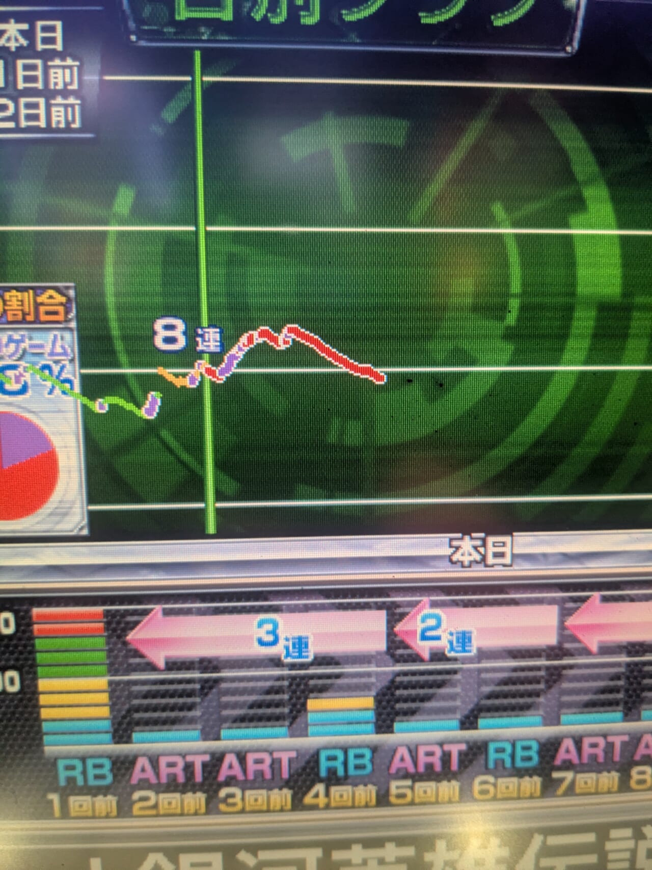 基本的にRBでデータカウンターはリセットされるため、ST間のハマりゲーム数は必ず「液晶ゲーム数」を確認。