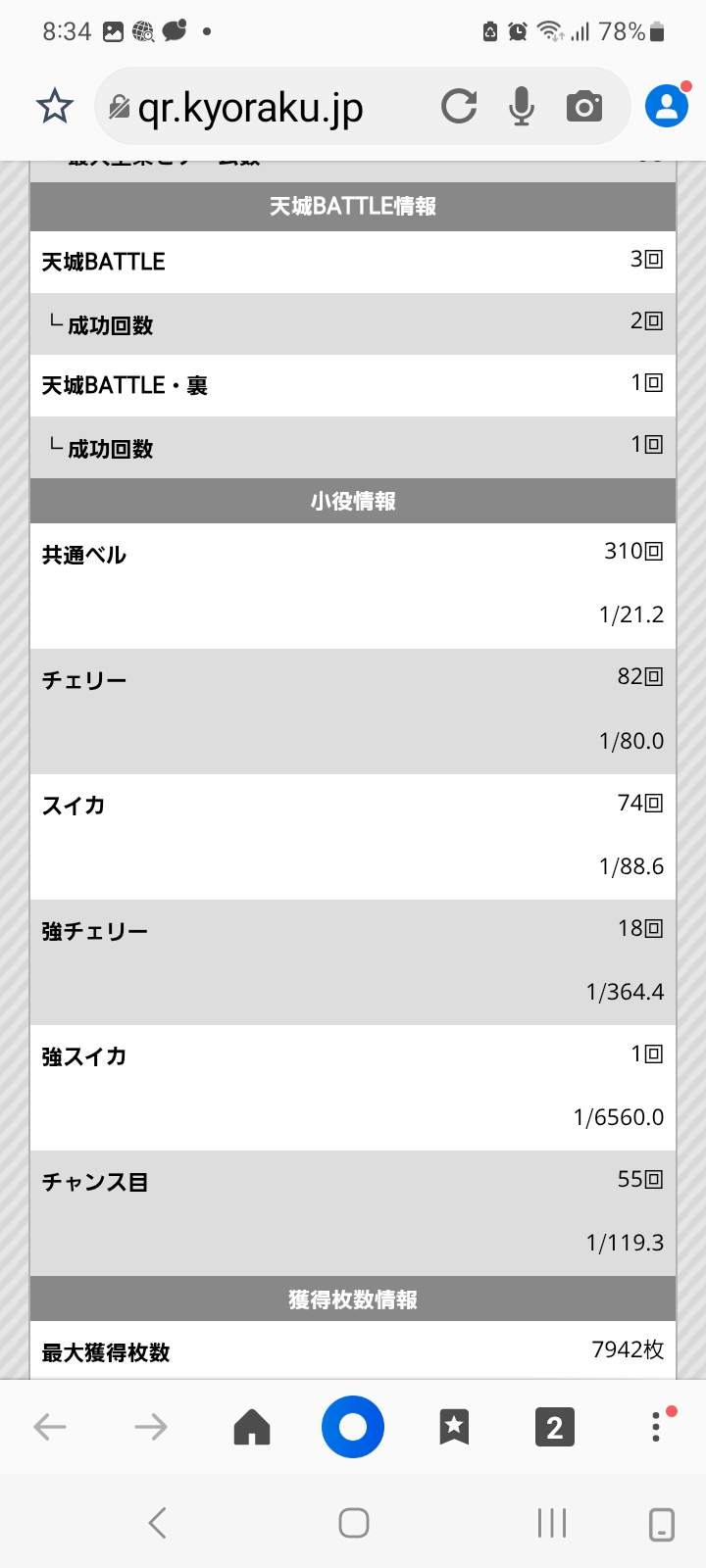 毎回高確ステージのチャンス目強チェリー星2発展。当落はっきりしすぎ。