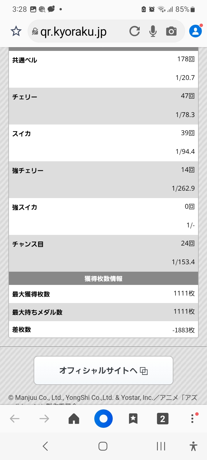 天井いくと700枚は持ってかれるんでまぁ300付近ハマるようだとバトルからボナ、ボナから共同戦線と安定して当て続けないと無理です