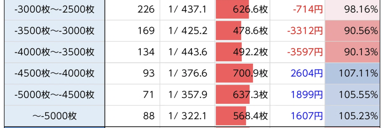 - 差枚4500枚以上マイナス台は初当りや期待枚数が上昇する傾向あり?