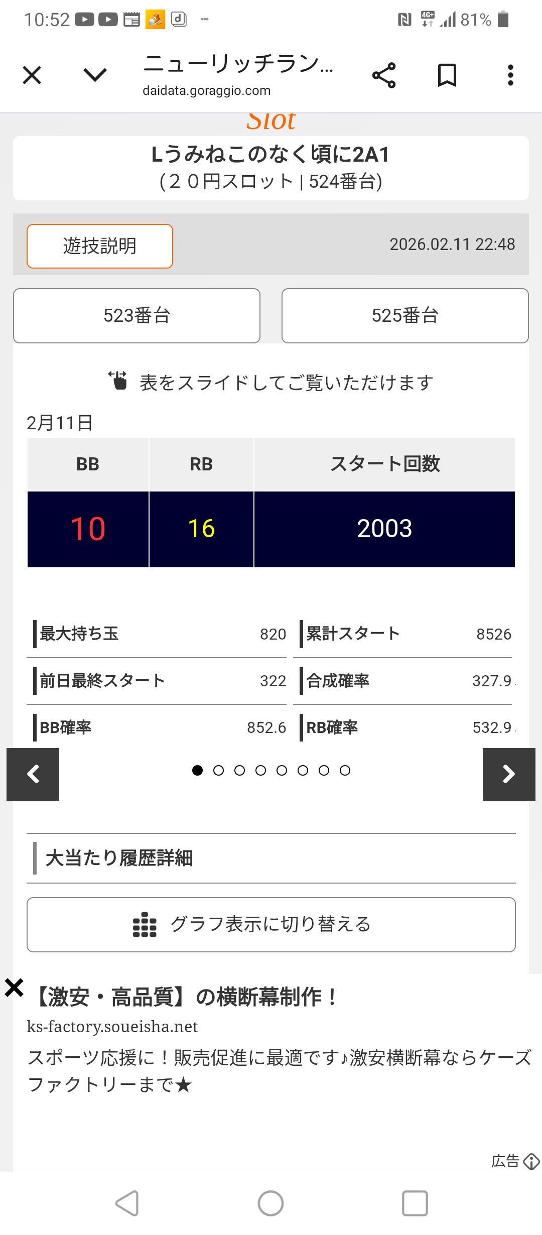 そんなだから稼働も良く、割が高いといってもボナ引けず富竹先行という負けパターンもあるし、都内非等価ってのもあって2以上は頻繁に出たし強い日は5以上も何度も確認できた。
