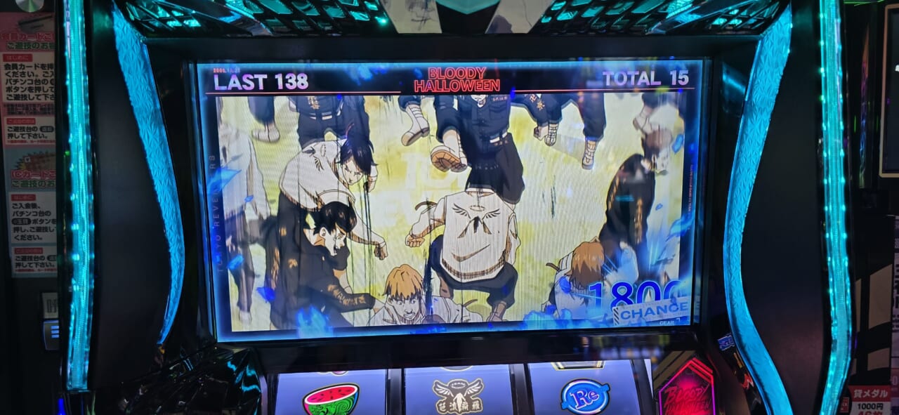 朝一狙い台取れなかったので仕方なく着席、最初こそ揉む展開が続いており稀咲陰謀(設定差特大らしい)も来たので高設定に期待しつつぶん回し、、、結果65,000円負け。