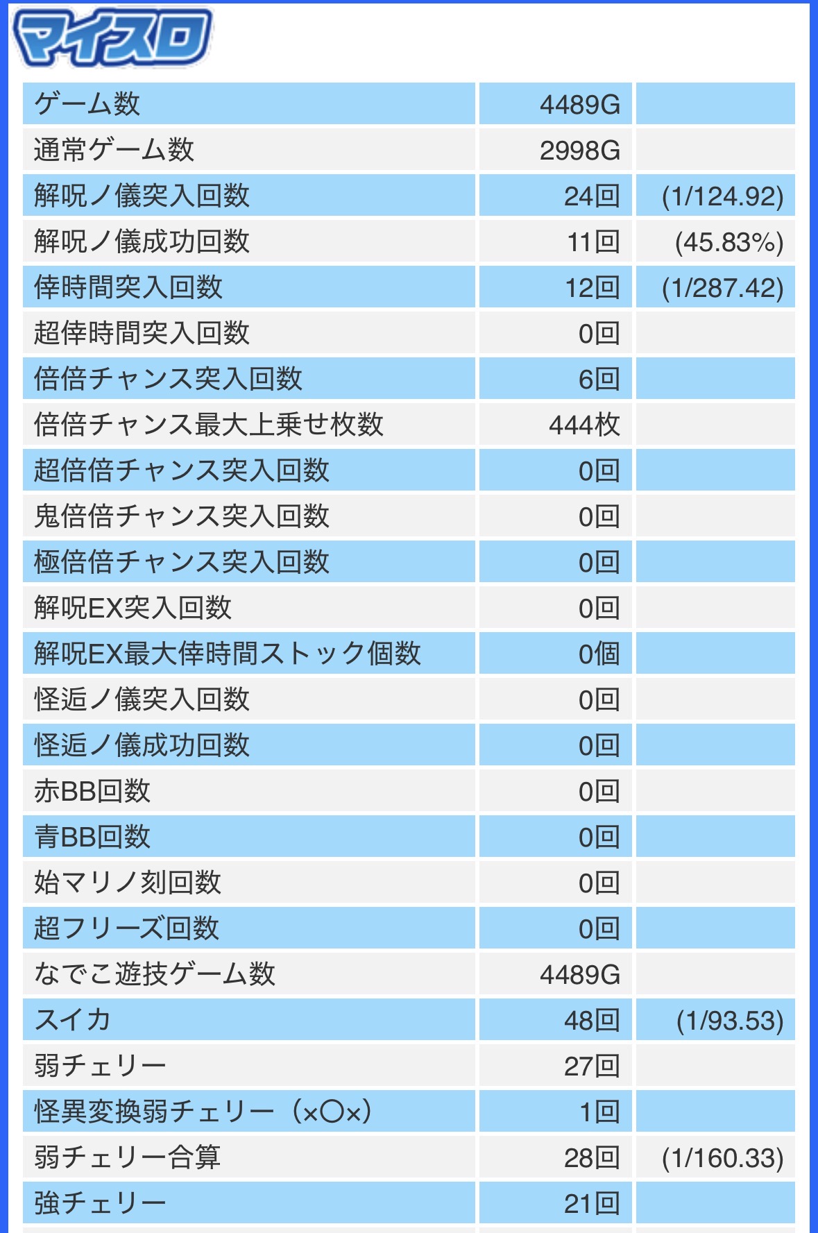 マイスロはやってないけどグラフはスクショなら、間のミミズ部分は150~250枚の駆け抜けラッシュでしたがCZは行った時点で確定かってぐらい当たりました