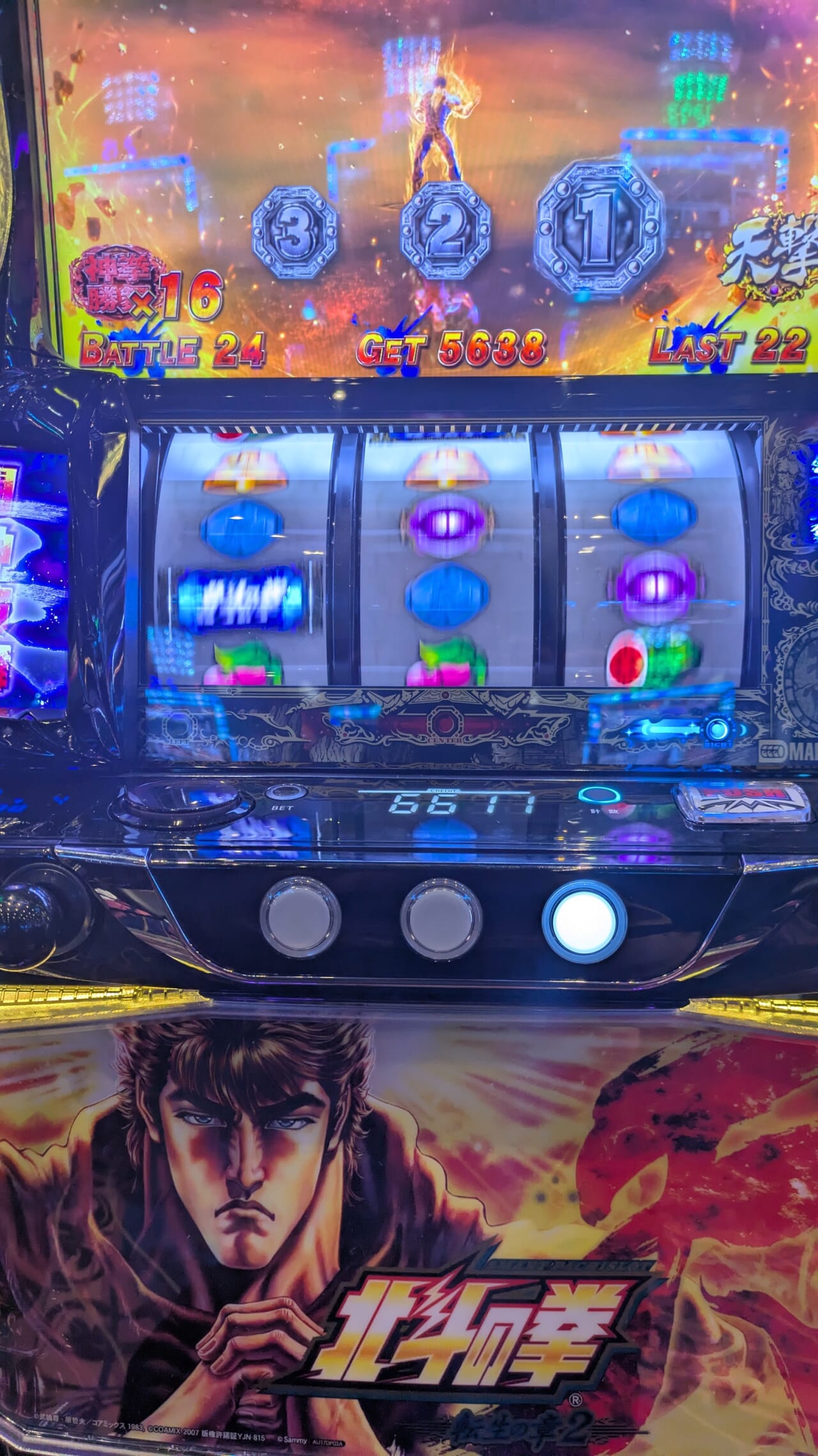 拳王、特闘→自分はこれを取らないと勝舞魂貯まりませんでした。神拳は前作より揃いやすい印象です(自分はカットイン含め本日1回のみ)