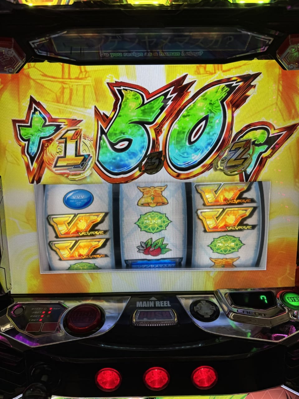 CZ本前兆中のニンゲンヤメマスカ揃いでルーンドライブ来て外れてその後前兆に戻りCZ当選。CZゲーム数が10ゲームだったのは何故ですかね?CZ本前兆はバー揃うとCZ直行じゃなかったけ?