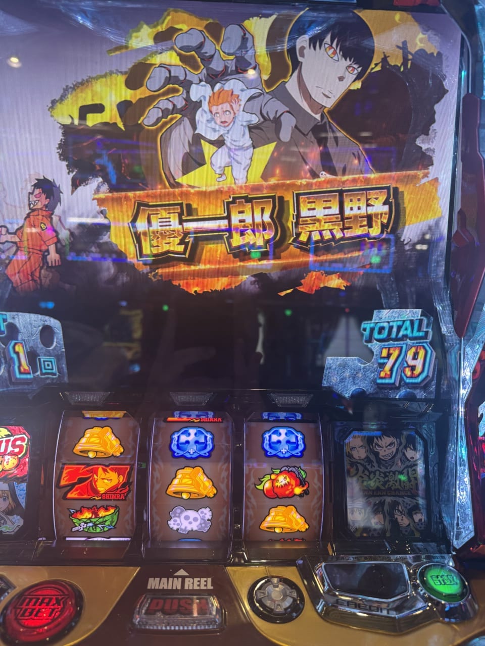 途中アクセルボーナス中のレア役から炎炎大戦取ってイケイケになりそのまま差枚2400枚エンディングでしれっと炎炎大戦終わって通常炎炎激闘に戻り2、3個ボーナス出てきてストック切れ。有利切れ後は普通上位ATスタートやろ、これはあかん夢がない…。