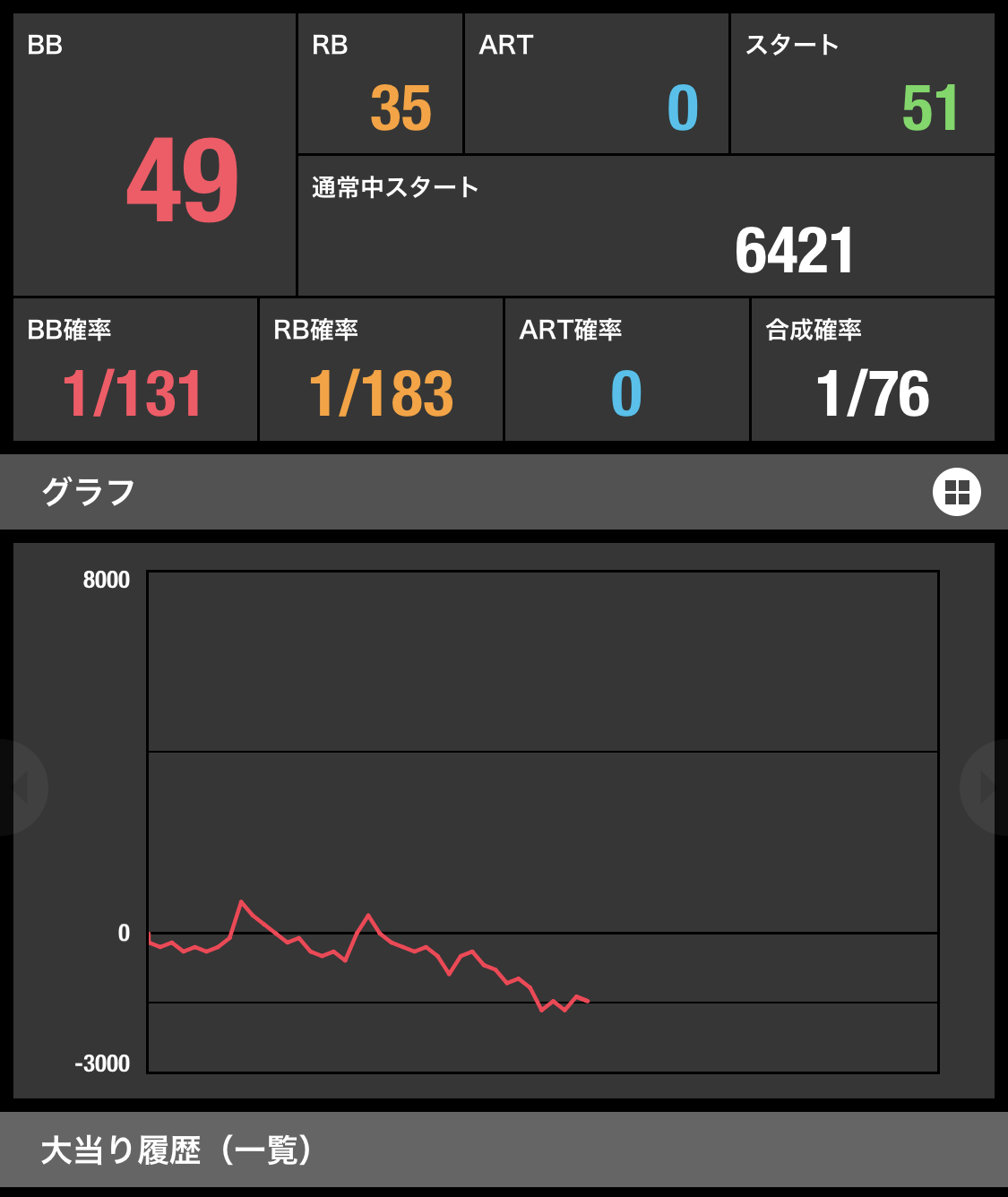 2回目(有馬失敗)差枚+-0の後はおっしゃるようにしばらく良挙動を続けた後差枚大幅プラスになって(切断失敗して)から冷遇に落ちた感じですね