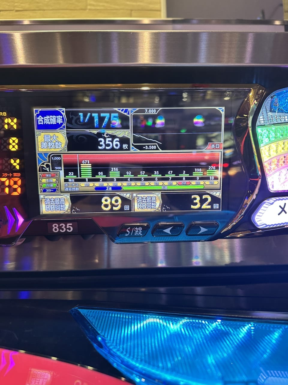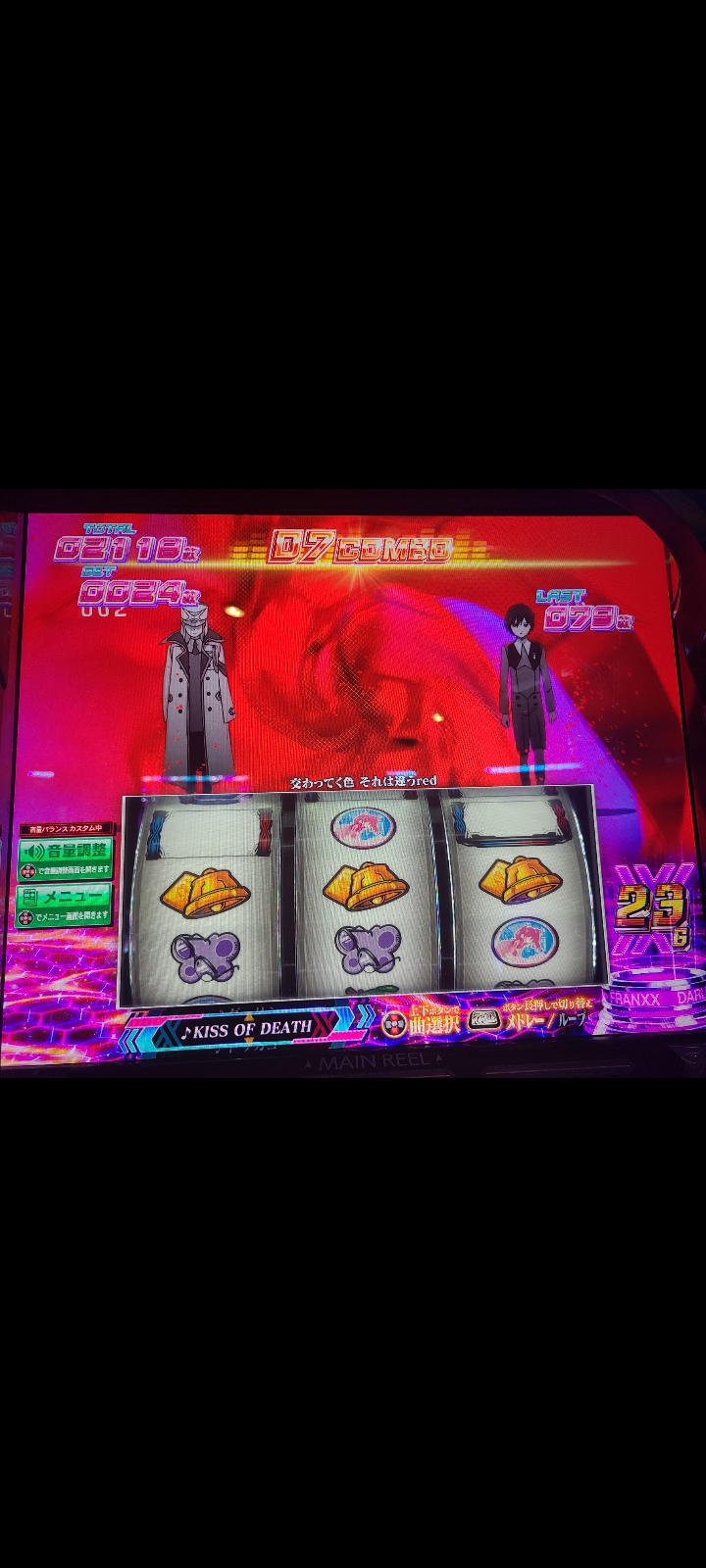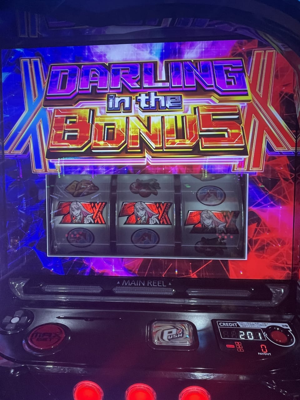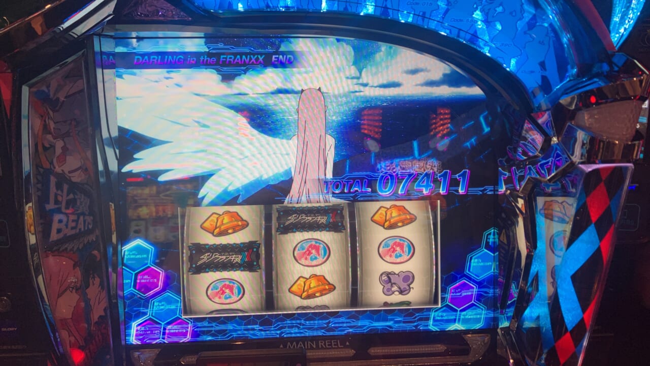凹んでる台で3000枚出て後少しで有利切りというところで終了。そこからがダリフラの冷遇だった。天井までチェリー、チャンス目、フランクス図柄無し、ゲーム数も50ゲーム刻みで抽選してるみたいだけどずっと青のまま。当然CZも無しでゲーム数天井。