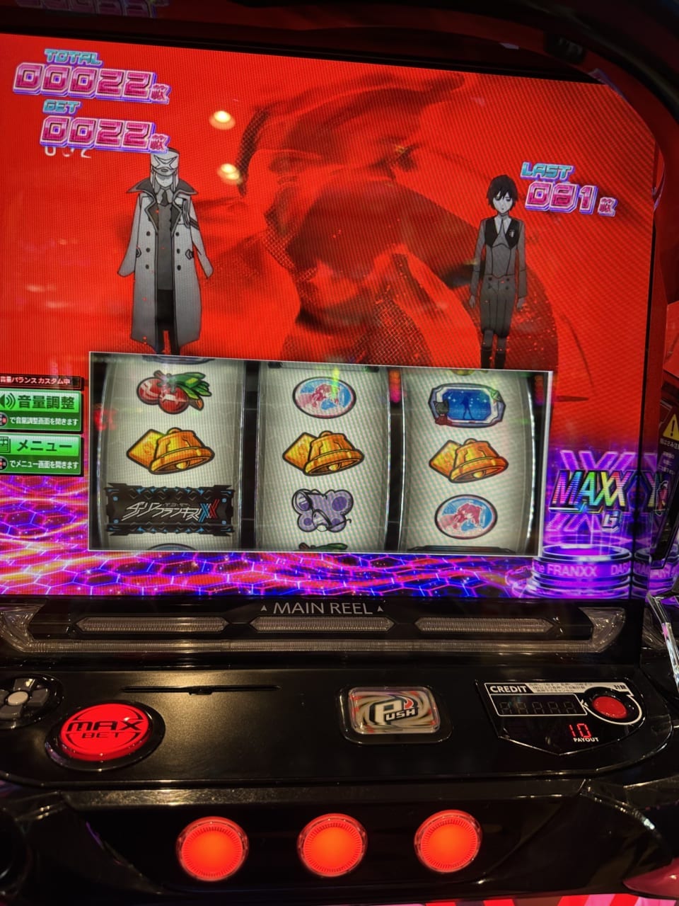 凹んでる台で3000枚出て後少しで有利切りというところで終了。そこからがダリフラの冷遇だった。天井までチェリー、チャンス目、フランクス図柄無し、ゲーム数も50ゲーム刻みで抽選してるみたいだけどずっと青のまま。当然CZも無しでゲーム数天井。