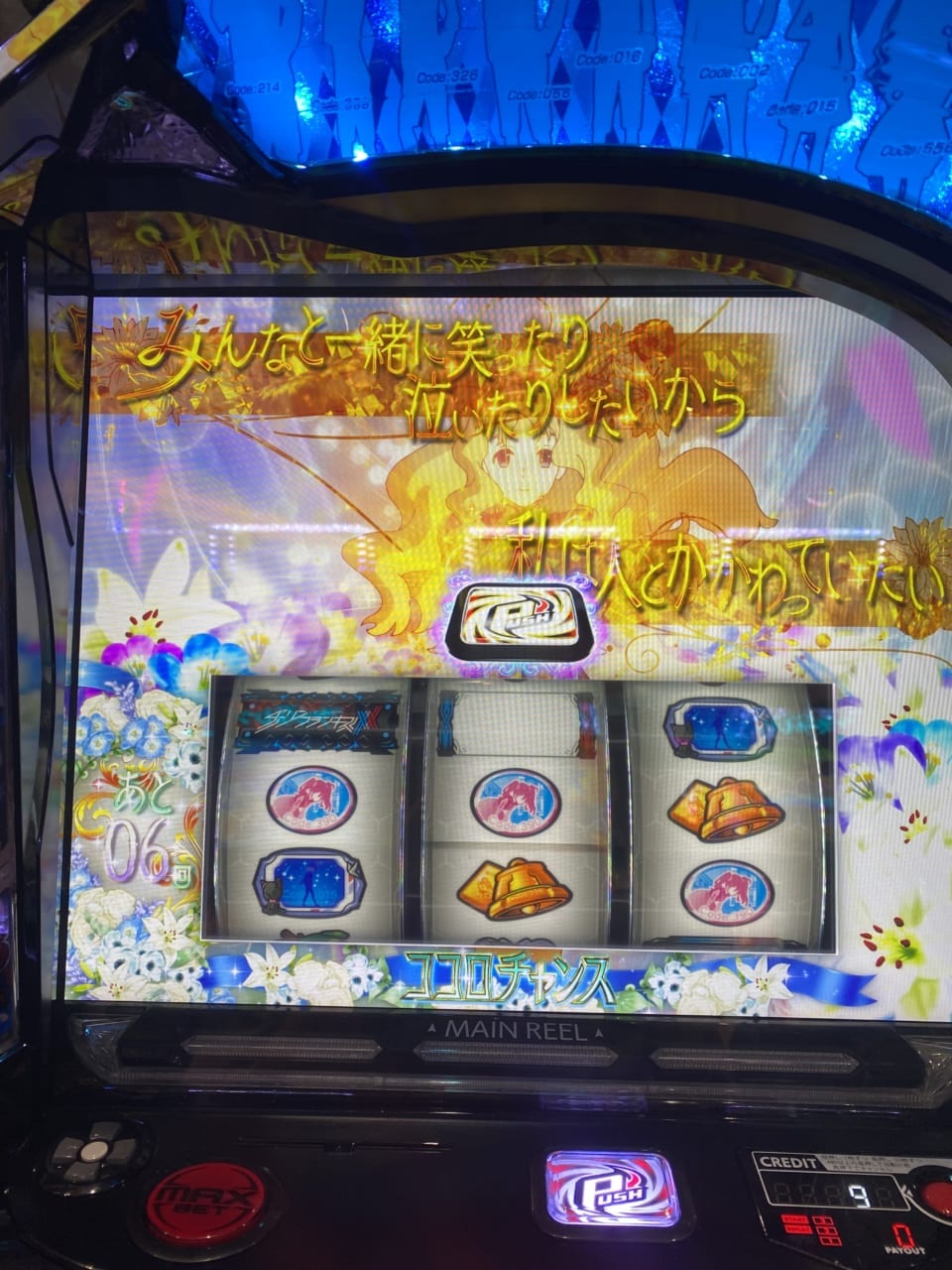 差枚2000程度のところでMAXX落ち、そこから有利切りであろう枚数出てるはずなのに一向にエンディングに入らず…。切ってるとしたらその辺が怪しいですね。