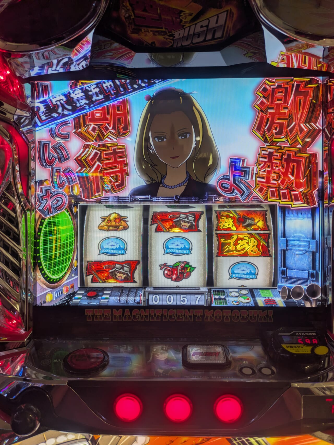 初打ち中。とりあえず出来は本当に酷い。レア役引きが大事なのに確率が出てない。ST中もczに入れないと始まらないのに確率が乗ってない。とりあえずロックオン2個は外した。色目押しストレス。ボーナス中のBGMがめちゃくちゃ小さい。そもそも音量が1で聞こえず2で爆音。パネル消灯しすぎ。
