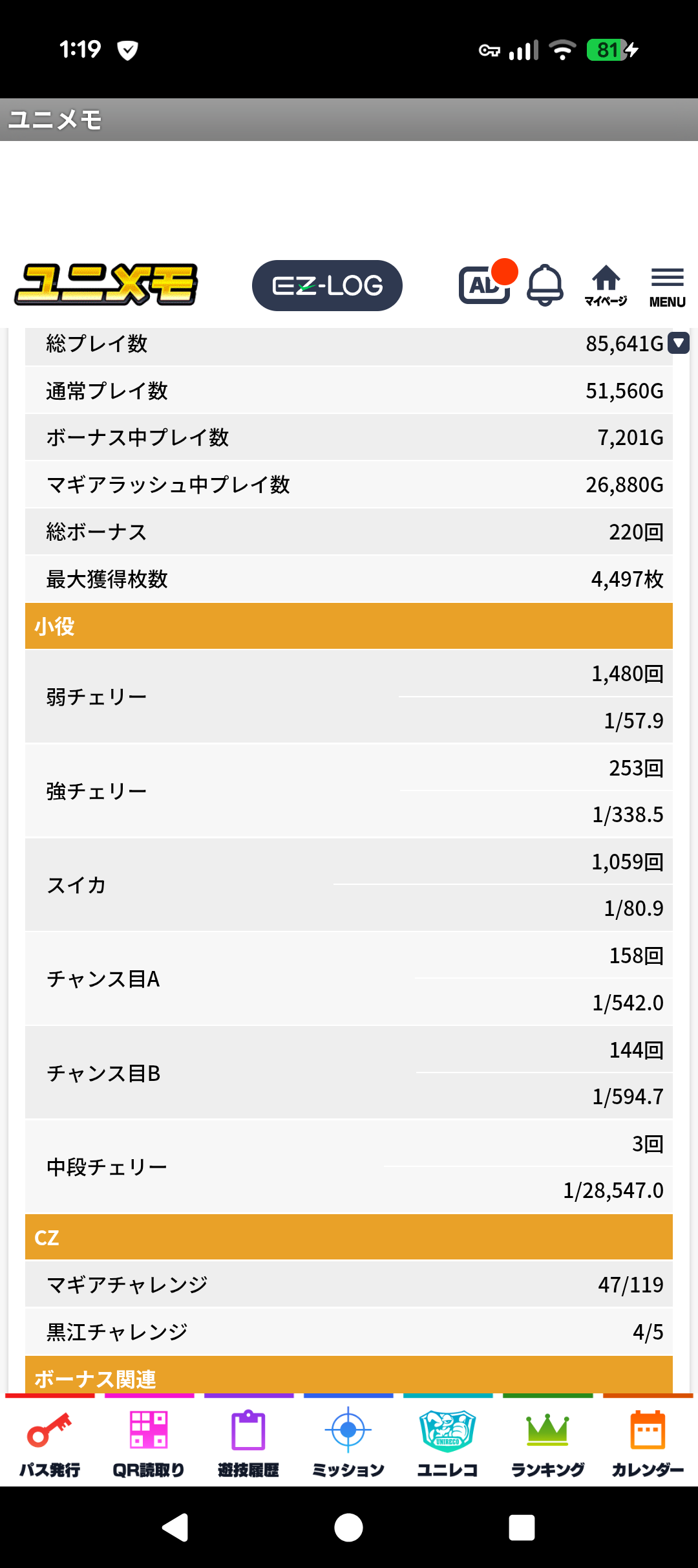 とにかくマジチャレに入らないし、強チェチャンス目から当たらなかったです。グラフはてっぺんから真っ逆さまが私です。