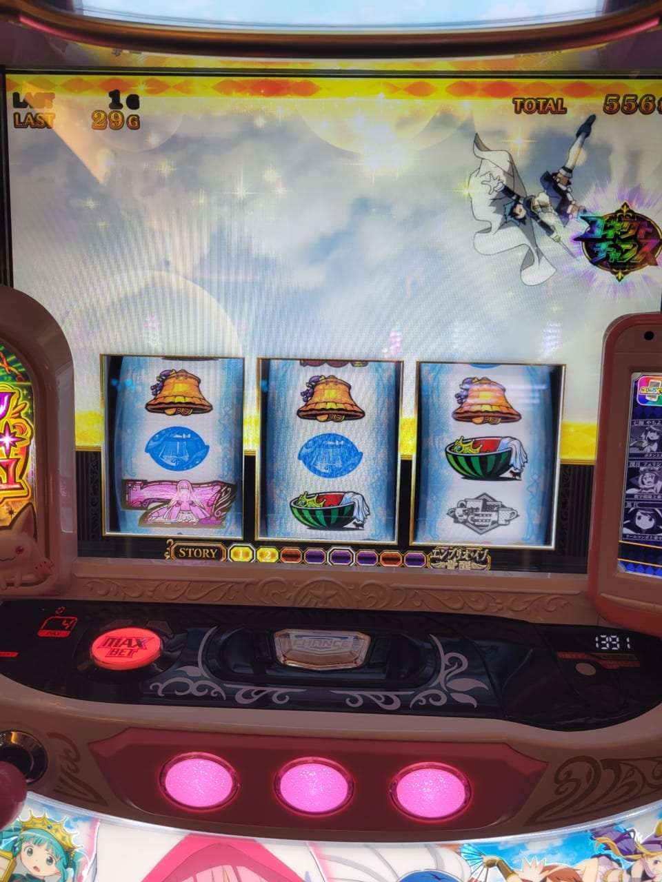 2000ハマりの穢れ獲得して7スルー超えたと思ったら急にレギュラーから調整屋紫までベルで行ってAT当選して草。