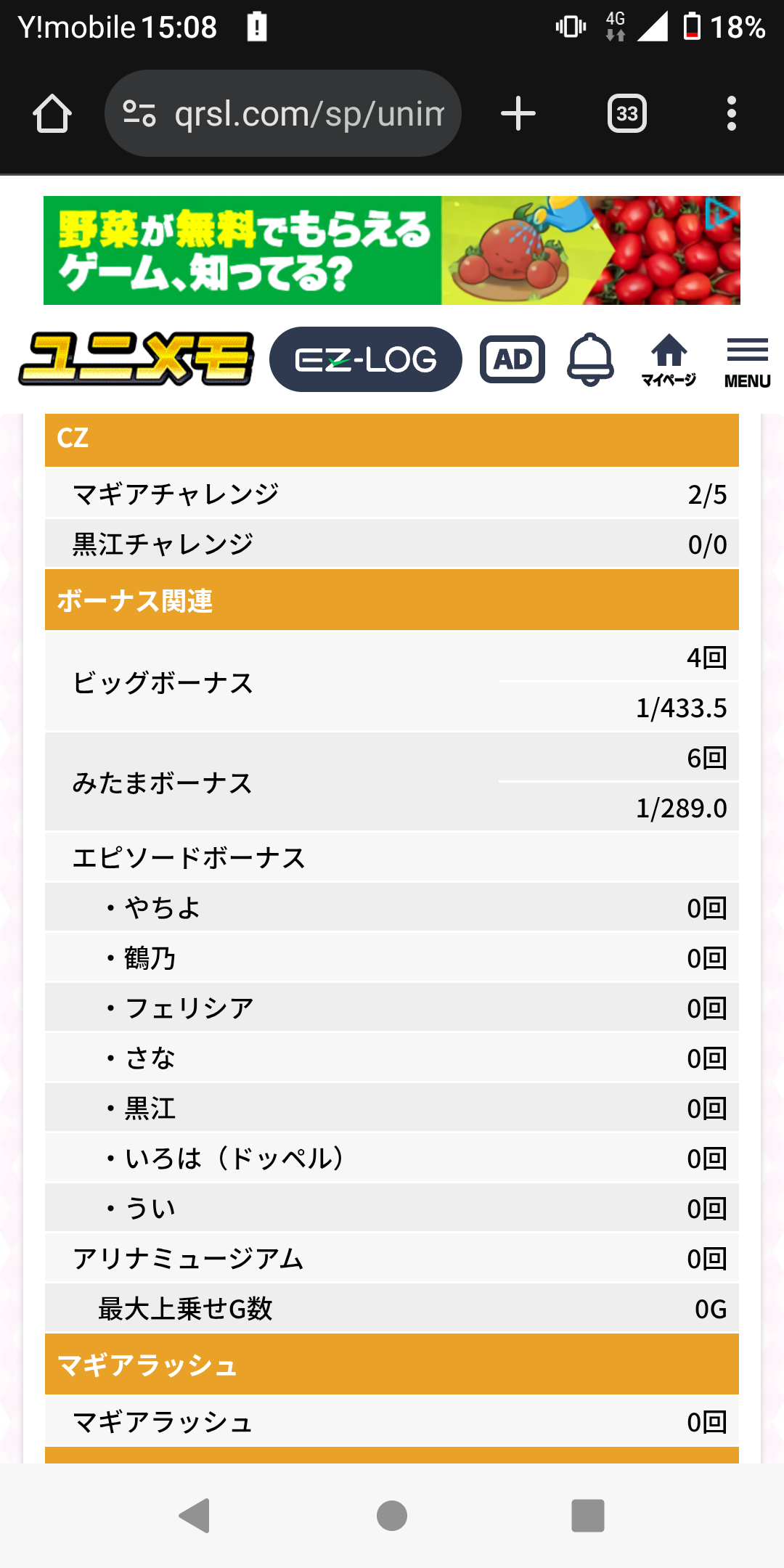 初期40Gで絶望してたらスイカボナ10G✕2で生きてるぅ〜からの最後の奴がマギアボーナスに化けて上振れしてくれて一気に覚醒取れました
