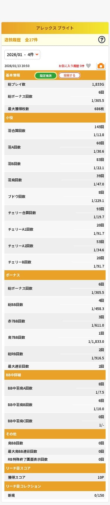 | 合計 獲得枚数 | 約350枚~500枚以上 |