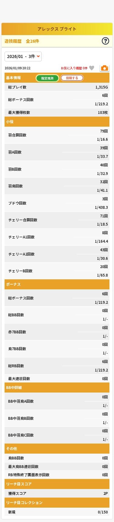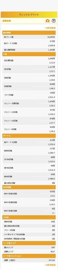 ただ、BTによる10%の175枚上乗せにかなり割を食われている印象。BT引けなければ1は当然爆〇、6でも安定感ないと思う。あと個人的にはリーチ目マシンは難解リーチ目を見抜いての1枚掛けがだいご味だと思ってるからBTとリーチ目マシンはあまり相性よくないというのも思わされたかな?そういう意味ではエヴァとかはBTとの相性抜群でした。アレックスに関してはナイツとかハイパーラッシュみたいなAT機でフライングベット機能ある仕様の方がBTよりも良かった気がする。