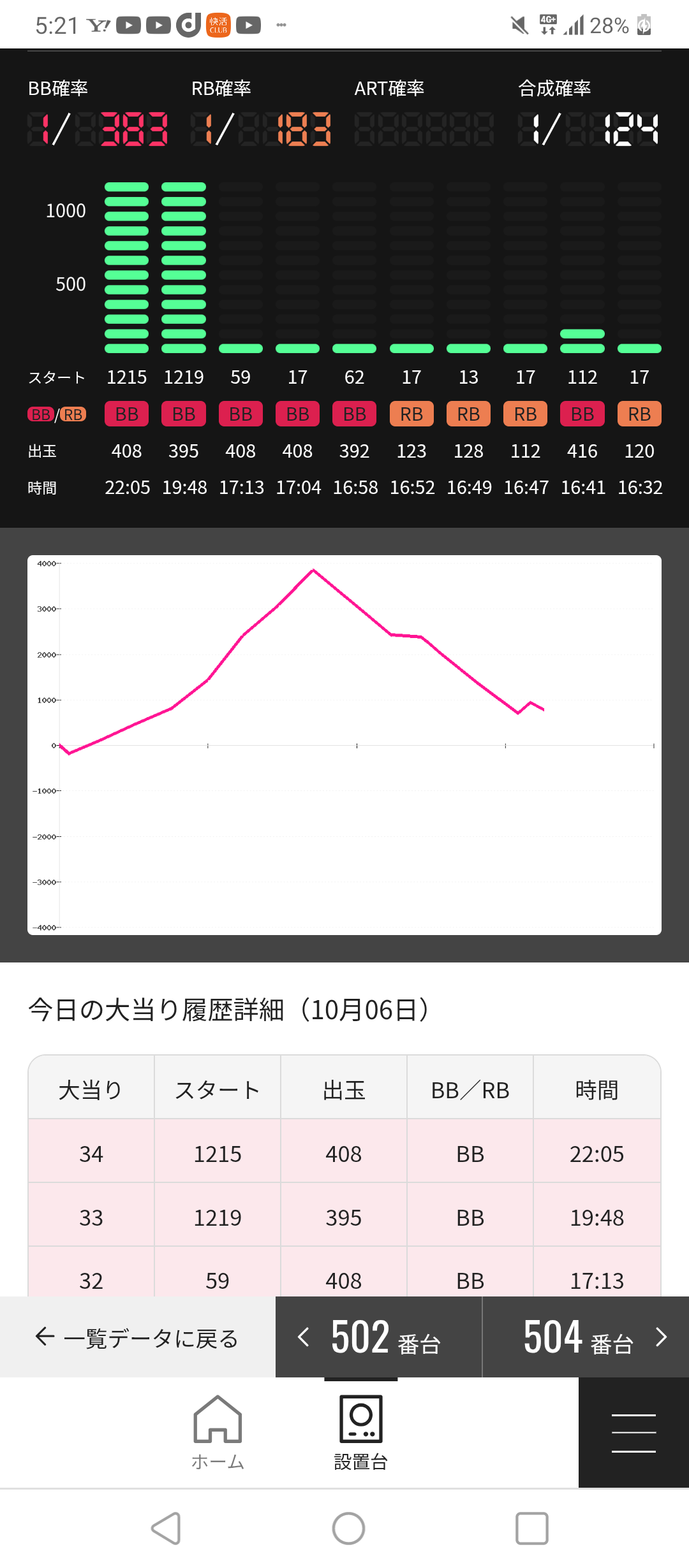 なら初当たりが1/538で天井が1280なのも仕方ないのかも知れないね