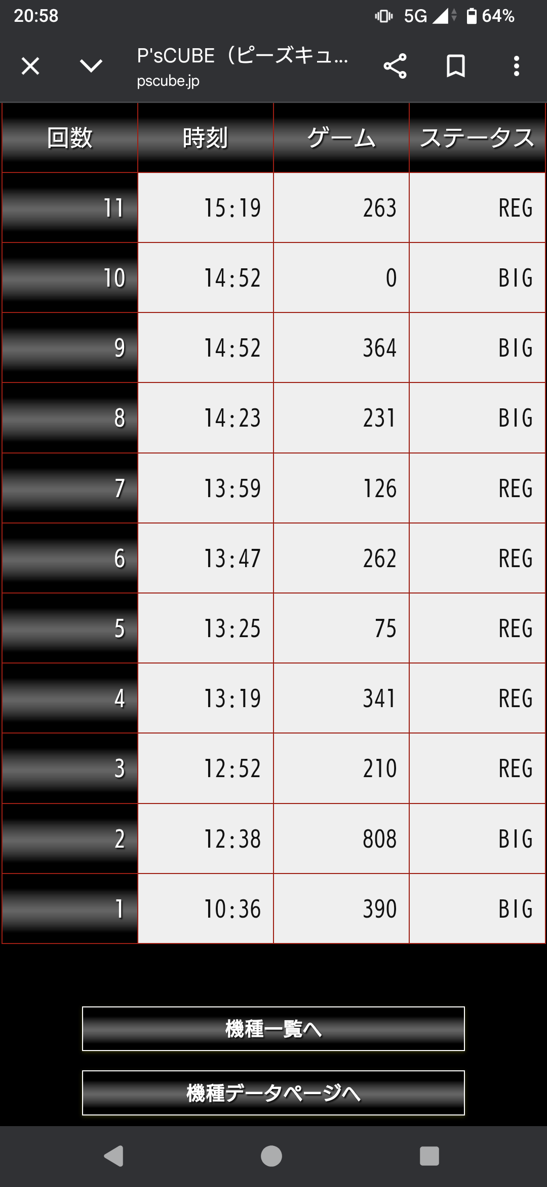 | 回転数/50枚 | 25.3G(設定1) |