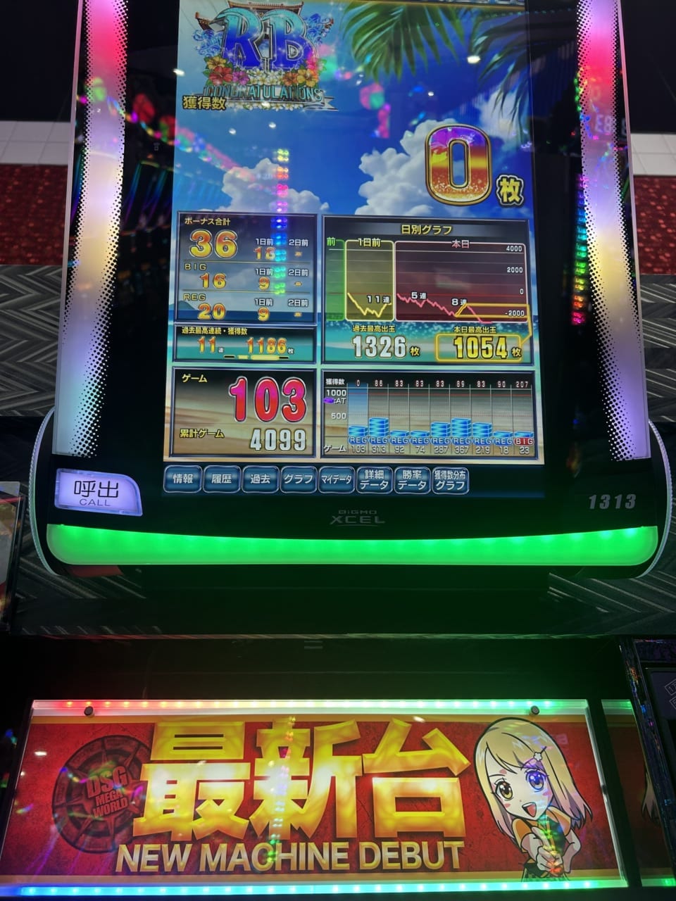 隣の方もチャンスモードは入ってましたが10ゲームほどで終わってて、したパネも消灯してませんでした。