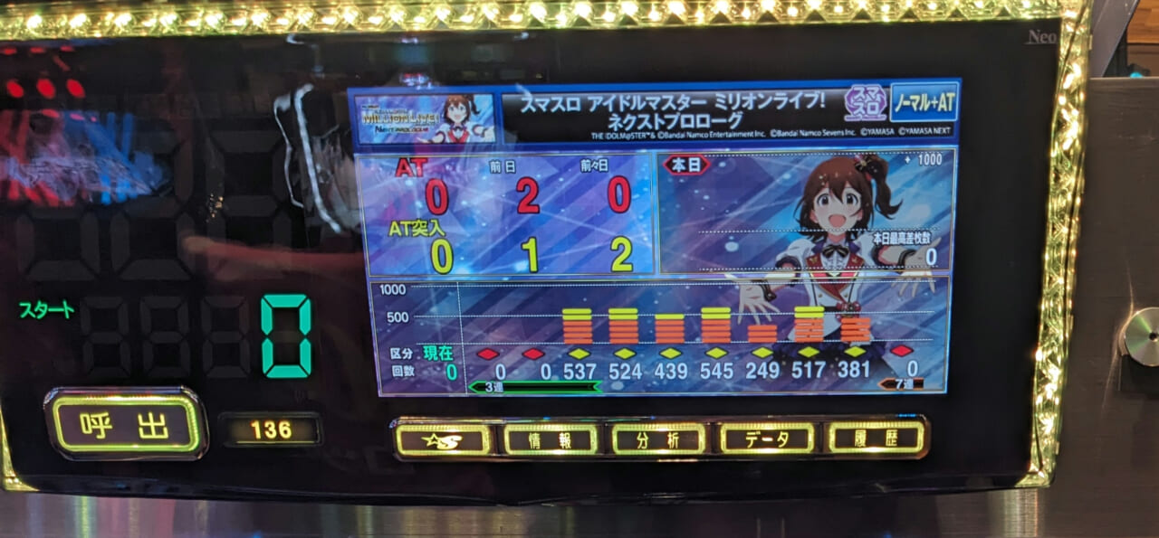 アイマス20周年の節目に、優良店でもロクに稼働が無い、それどころか既に撤去された店すらそこそこあるという……山佐はちょっと調子乗りましたね。これが本来の実力ですよ。
