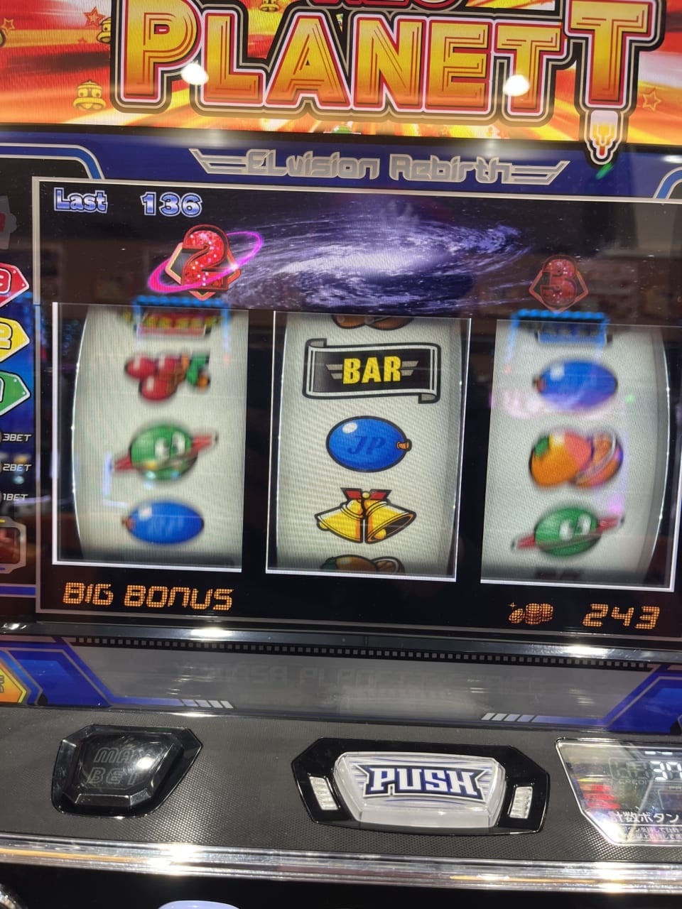 ちなみにビッグバンモードに移行するまで一度も連チャン準備示唆(右のランプ)は光りませんでした。