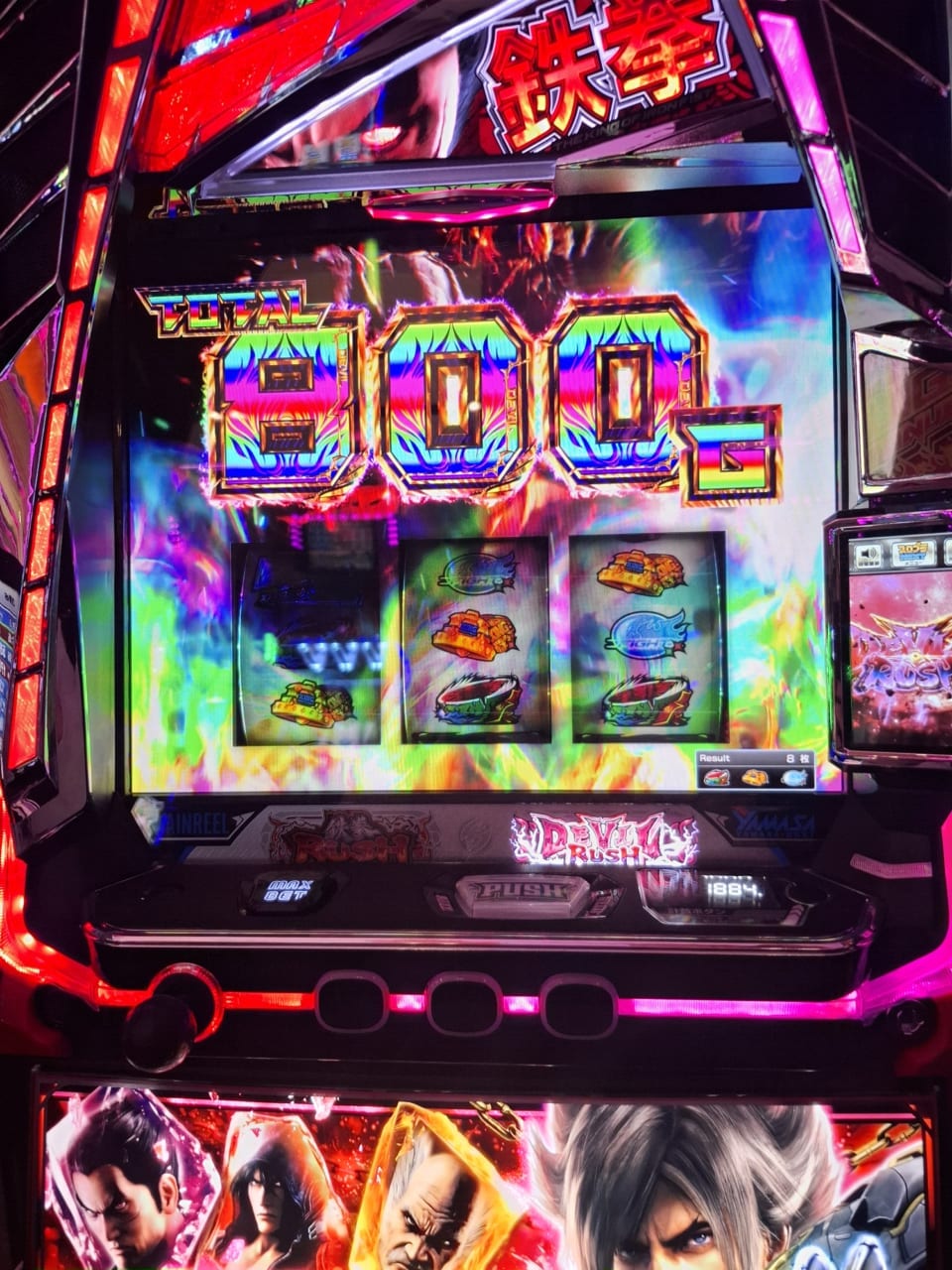 稀玉と倍玉で赤七引いたらぶっ壊れたのだけは面白かった。なんか当たった!ってのが面白かった鉄拳チャンス返せ